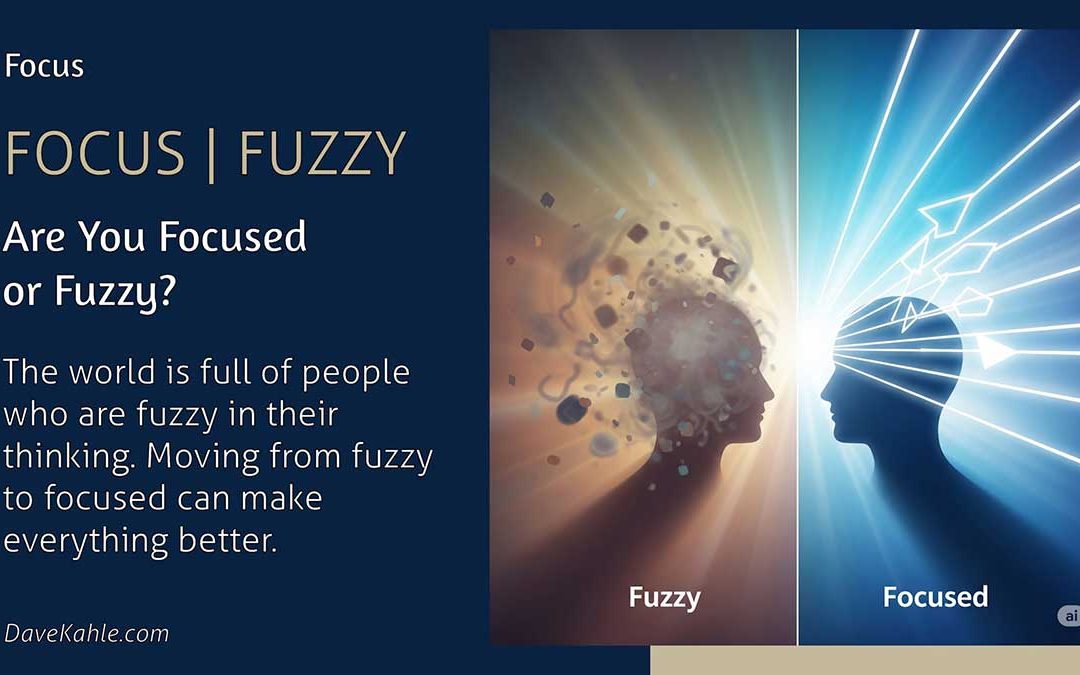 Let’s begin with some definitions. Fuzzy refers to the way many people think about things and decide what to do. Fuzzy means that their observations, concepts, and decisions are vague and general. Focused means that their ideas, their observations, and their decisions are precise.